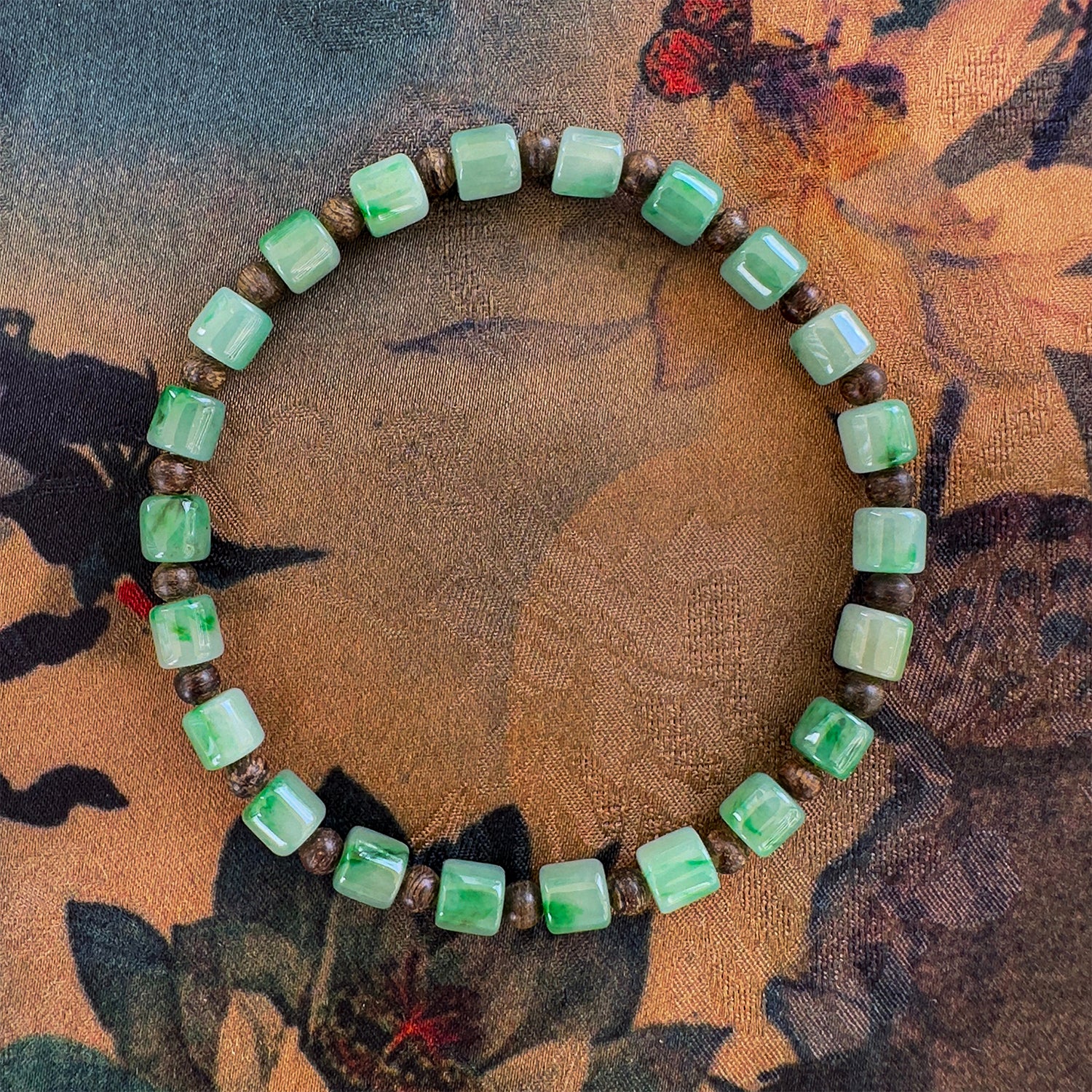 The beads come from collector-grade jadeite rough, leftover edges thoughtfully repurposed after top-grade bangles and cabochons were cut—turning precious fragments into wearable art. Paired with sinking-grade Kalimantan agarwood whose profound aroma deepens with every wear, this bracelet becomes more than adornment: it’s a quiet homage to legacy, rarity, and natural beauty.