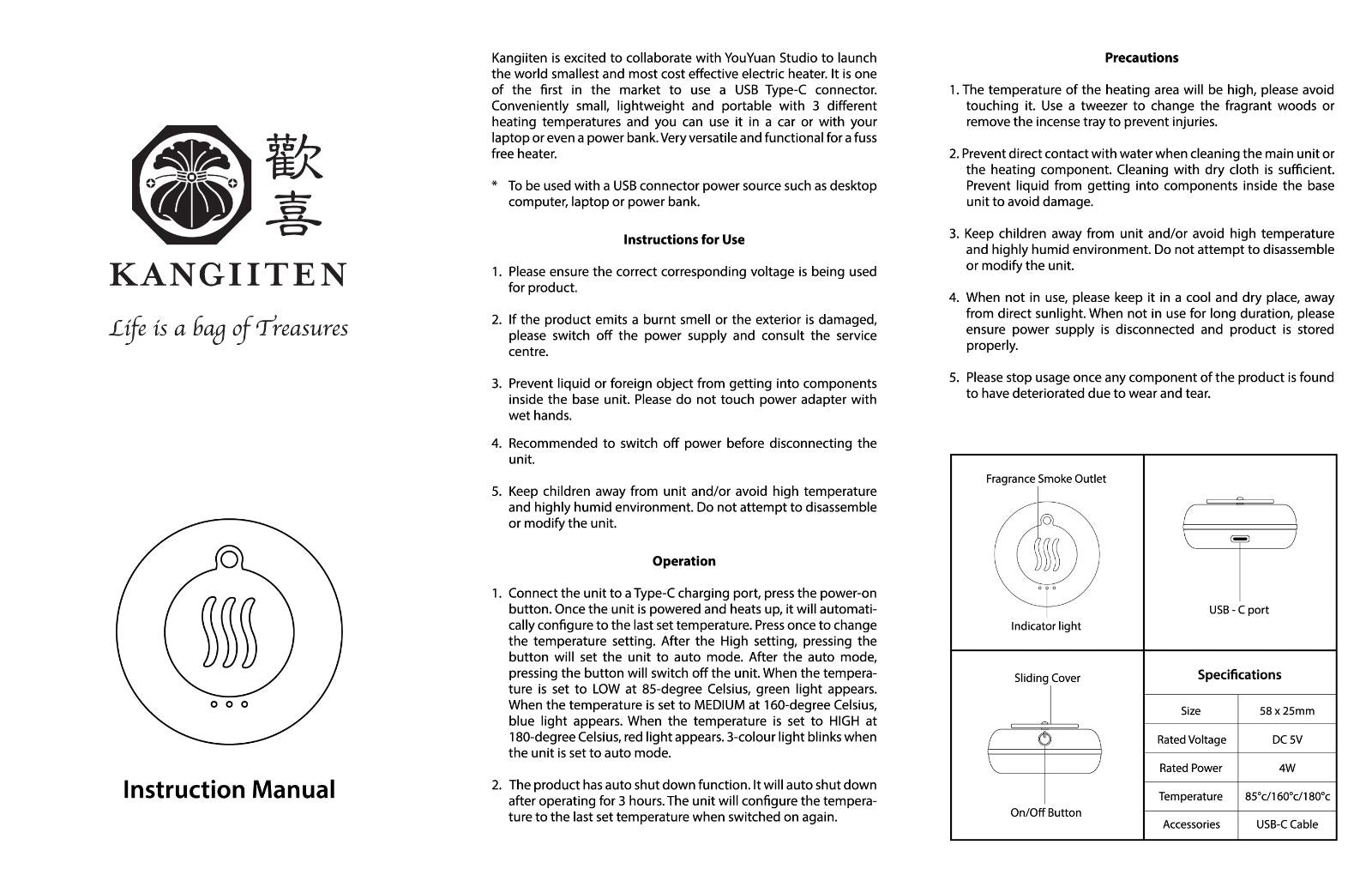 Our portable heater is carefully designed as a daily essential aromatic gadget, no matter where you are, kangiiten is always with you.