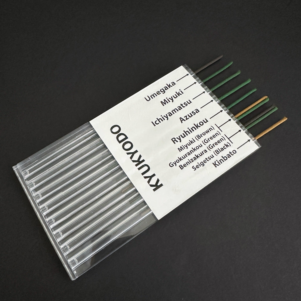 Sampler set with 10 types of incense from Kyukyodo Incense House.