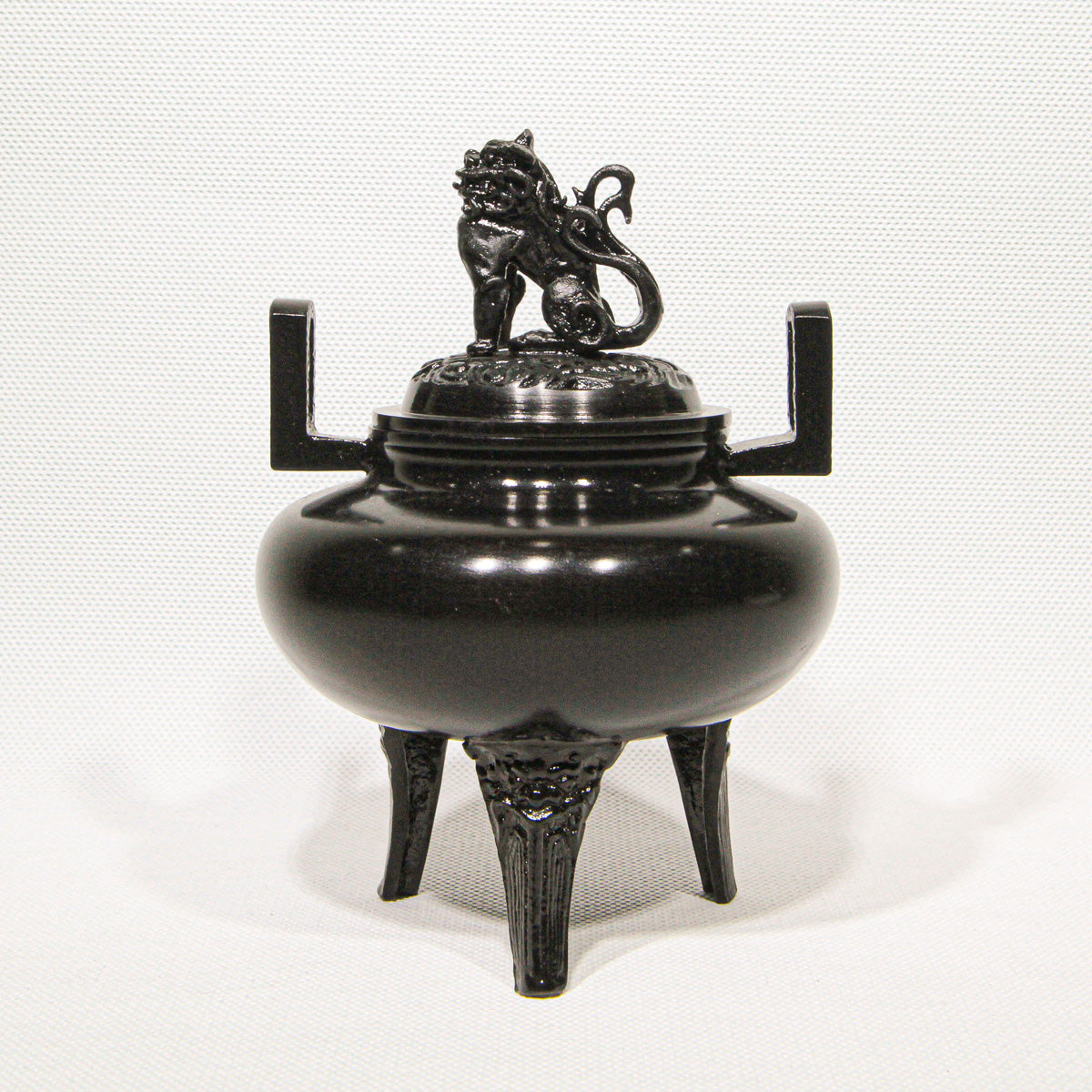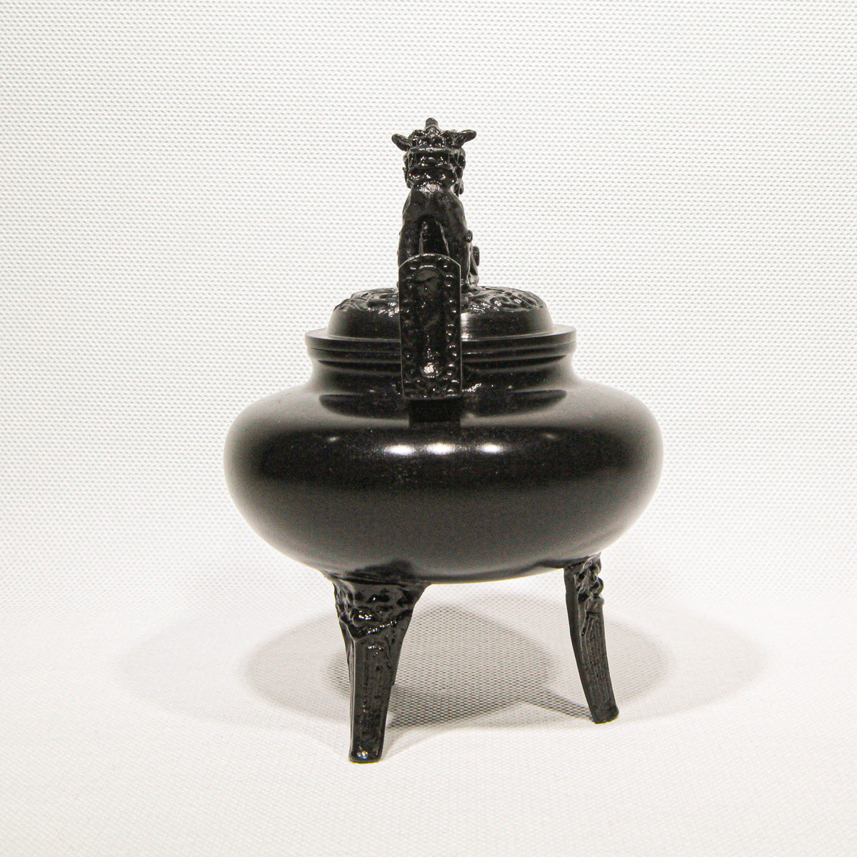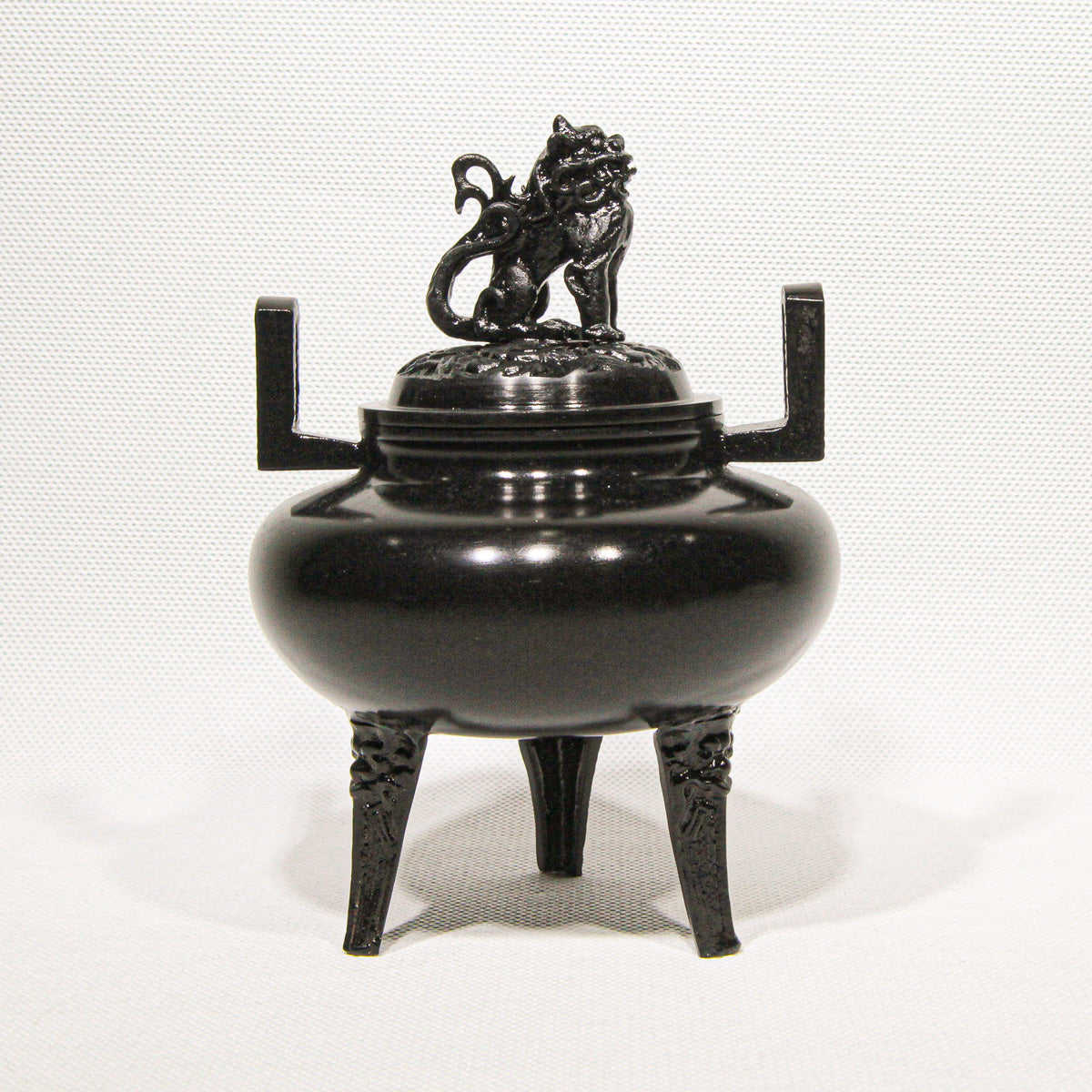 Fashioned in an elegant flat, round form (平丸), this incense burner rests on three sturdy legs, each adorned with subtle relief motifs that echo the refined artistry of Japan’s master metal casters. Delicate details continue along the upright handles and culminate in the perforated lid crowned by a spirited lion finial (獅子蓋), a classic symbol of protection and auspicious energy.This Hiramaru Shishigai Koteiro Koro is a superb example of Takaoka Copperware, a celebrated traditional craft from Takaoka in Toyama Prefecture with over 400 years of metalworking heritage.