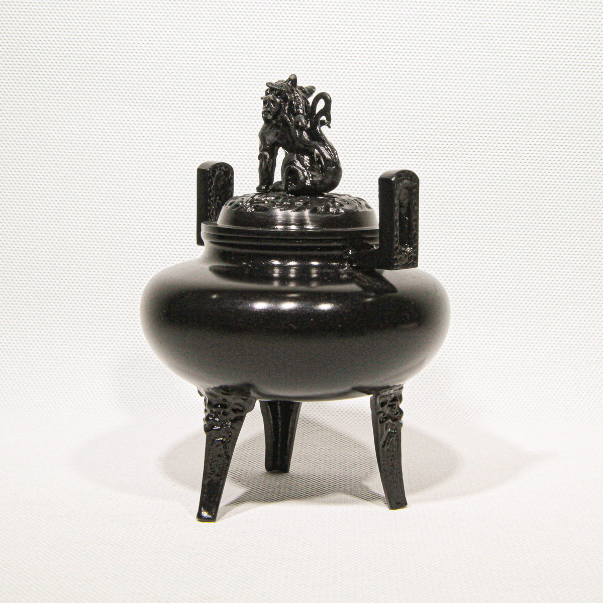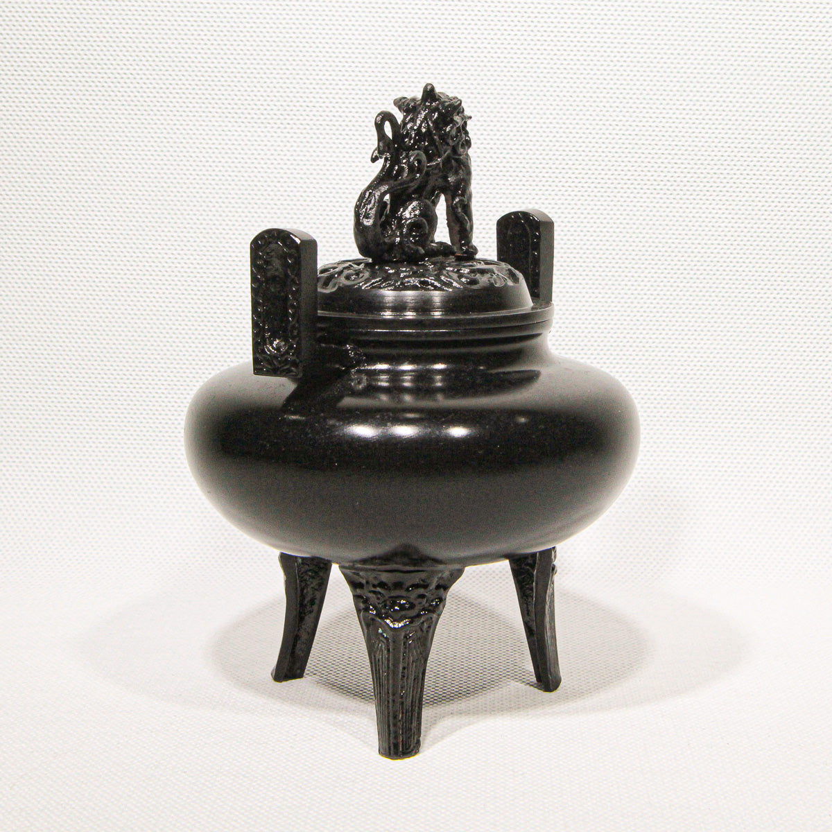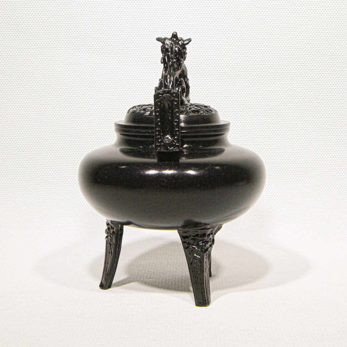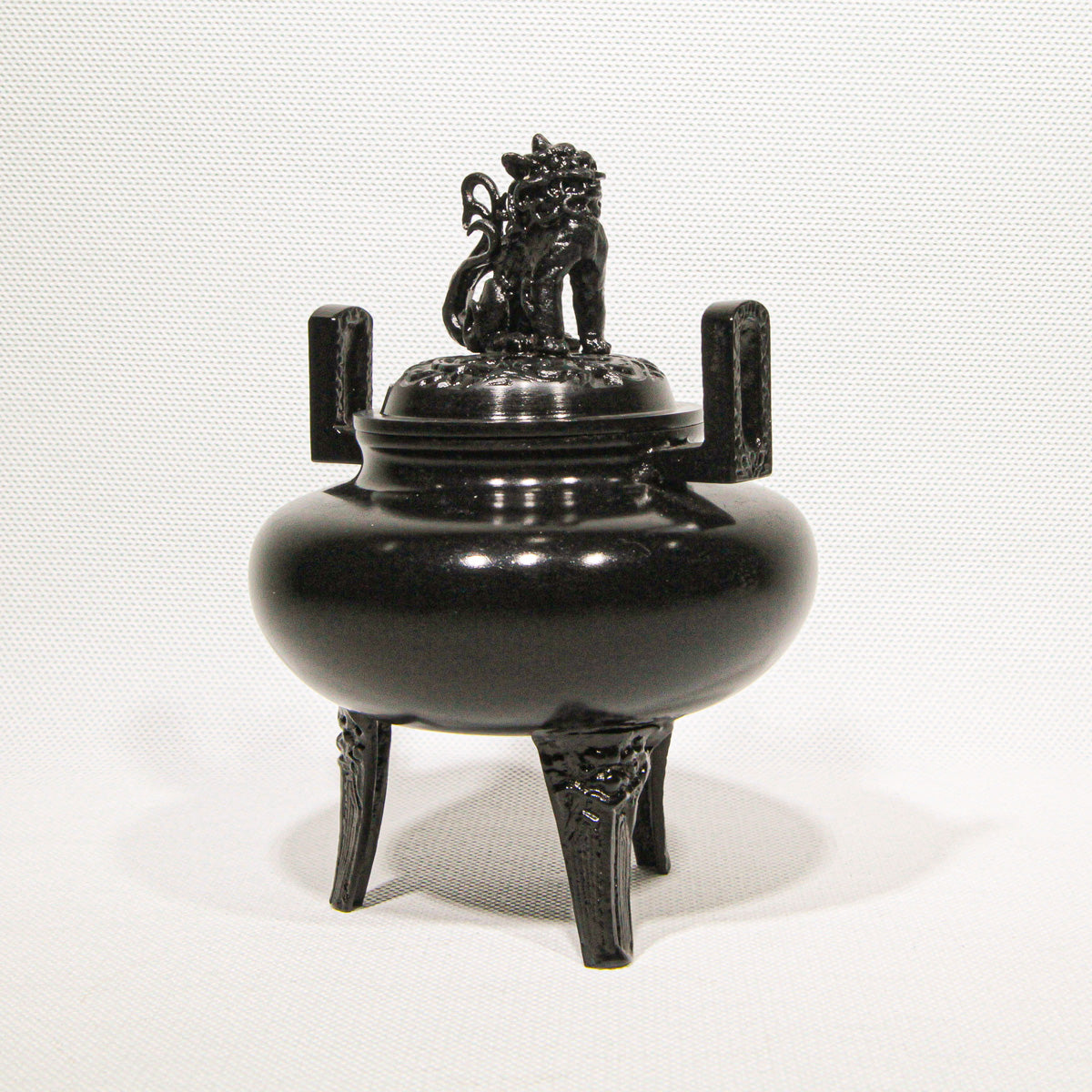 Fashioned in an elegant flat, round form (平丸), this incense burner rests on three sturdy legs, each adorned with subtle relief motifs that echo the refined artistry of Japan’s master metal casters. Delicate details continue along the upright handles and culminate in the perforated lid crowned by a spirited lion finial (獅子蓋), a classic symbol of protection and auspicious energy.This Hiramaru Shishigai Koteiro Koro is a superb example of Takaoka Copperware, a celebrated traditional craft from Takaoka in Toyama Prefecture with over 400 years of metalworking heritage.